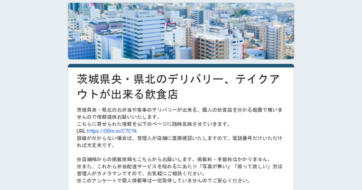 茨城県央・県北の飲食店情報をお持ちの方は以下のフォームより、情報提供をお願いできないでしょうか?